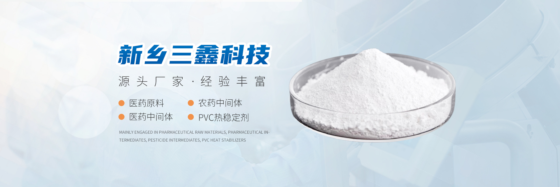 新乡市三鑫科技有限公司主要从事医药原料、医药中间体、农药中间体、PVC热稳定剂、精细化学品和有机中间体。